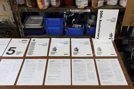 展覧会は外部のギャラリーや美術館で開催する案もあったのですが、開校翌年の1970年から使用している歴史ある校舎を見てもらいたいと思い、神保町の本校で開催することにしました。展示物は、70年当時からある什器や版画設備、過去の募集要項・ポスターなどを中心とした資料に加え、30名以上の美術系講座講師の作品という構成になりました。告知ページはこちら。