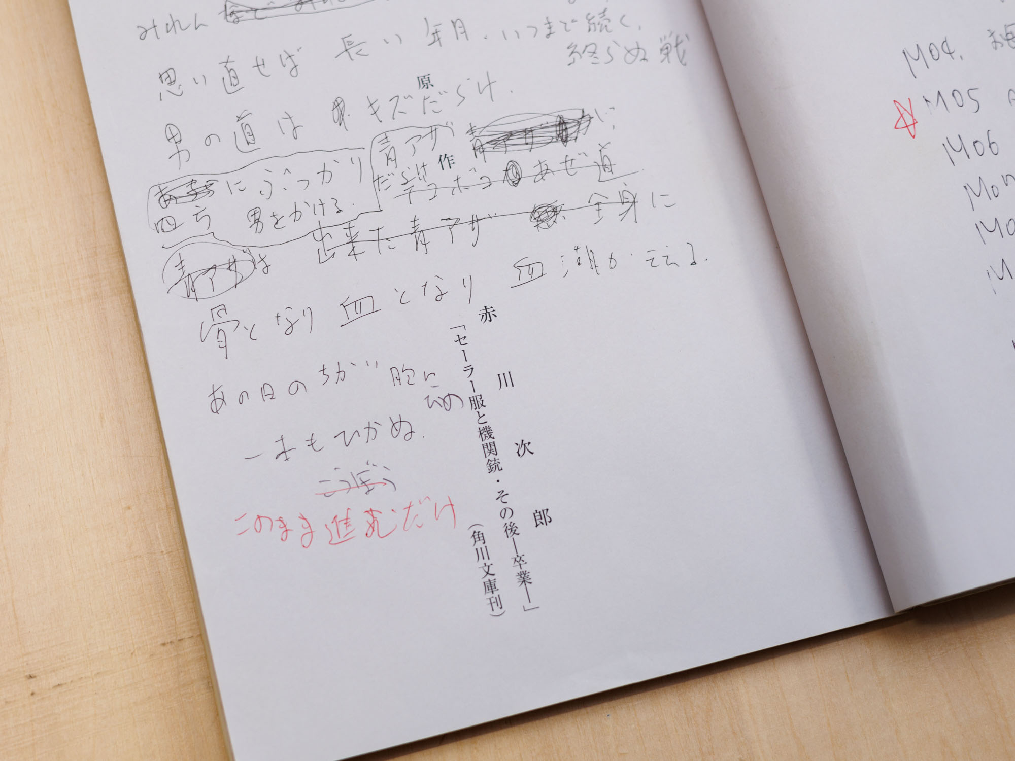 制作メモが書き込まれた『セーラー服と機関銃 -卒業-』の台本