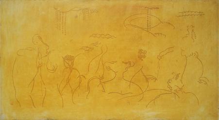 銅版画(凹版)の制作は、薄い銅版表面で繰り広げるマイナスの作業といえます。直接鋭利なニードルで引掻いたり、強酸の力で腐食(エッチング)したり、様々な薬品や道具を使い随分と手荒なプロセスを踏みます。このように出来上がる銅版の原版は、その凹部に詰められたインクとエッチング・プレス機の物凄い圧力によって、最終的に紙の表面に反転しプリントされます。・・・・・この瞬間、皆さんは銅版画の表現効果に魅了されるでしょう。鋭く自在な線、微妙で繊細な濃淡面、重厚な質感。・・・・・その転写されるイメージは、ドローイングやペインティングと全く異なるからです。