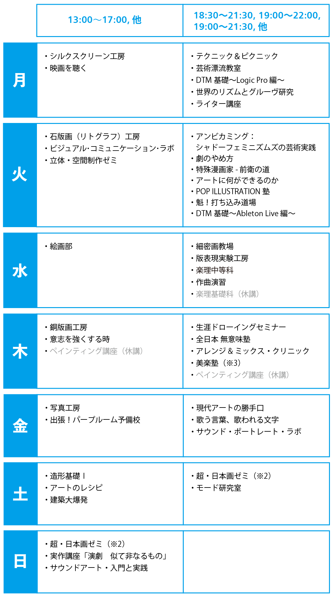 東京神保町にある1969年創立の絵画、版画、写真、現代美術、作曲、DTM、演劇、漫画、イラストの学校。年齢・性別・国籍不問。