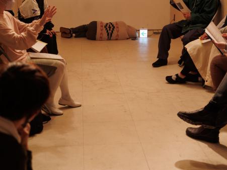 「劇をやめる」という問い立てについて、講座要項を見てみると「劇を認知することと社会を認知することはほとんど等しい。つまり、ある劇を共有できることで生まれる社会の中に私たちは生きている。」(篠田千明)とあります。受講生たちは自分が取り巻かれ、身を置く役割について考えながら講座を受けたのではないかと想像します。
