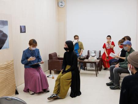 日常生活で求められる「役割」をやめられないと悩んでいた当時、講座タイトルに惹かれて受講を決めました。 講座では日々の雑談の中から悩みや気になっていることを見つけたり、受講生が試したいことを持ち寄ったり、篠田さんのメソッドをやったりと、参加者に合わせた流動的な内容で快適でした。修了展では初めて演出家として「他人に自分の作品をやってもらう」ことを経験し、自分が一体何に気を使ったり怖がっていたりしていたのかが少しわかった気がします。